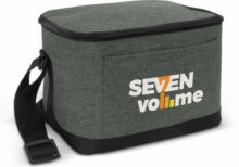 Small 4.2L cooler bag with PE foam insulation encased in a waterproof PEVA inner liner. The outer construction is poly-canvas with an on-trend heather style finish. It has a zippered top closure, a slip pocket on the front and an adjustable woven shoulder strap. |