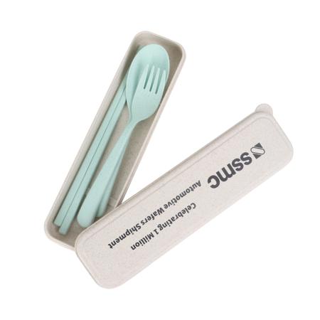 Portable all in one travel utensils set are supplied in Wheat straw and are compact and environmentally friendly. It is a great promotional giveaway when travelling on the road on business that is inclusive of a pair of chopsticks, a small spoon and a fork, which includes a portable case to keep all utensils neatly and can be print with your company name and logo.