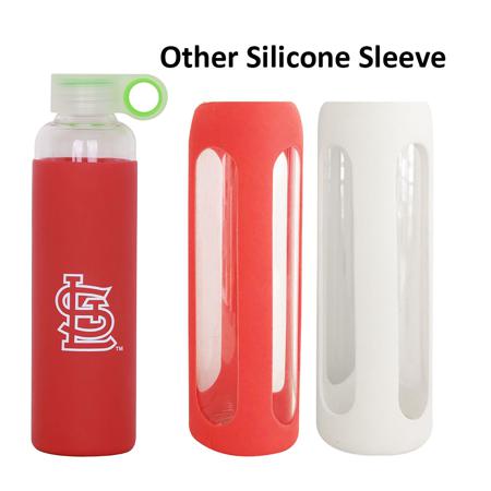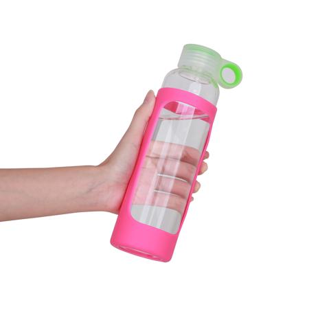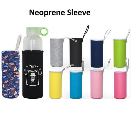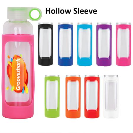 The borosilicate glass drink bottle features i secure screw on PP O-ring lid, and it is light enough to take anywhere. It is great for hiking, camping or any outdoor activities. Borosilicate is a lightweight glass that is exceptionally strong and shatter resistant. Glass drink bottles are a great environmentally friendly choice. This product is not intended to be used with carbonated or hot liquids, and handwashing is recommended. You can choose to add a protective soft-touch silicone sleeve or a neoprene sleeve that can be printed with any logo.