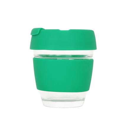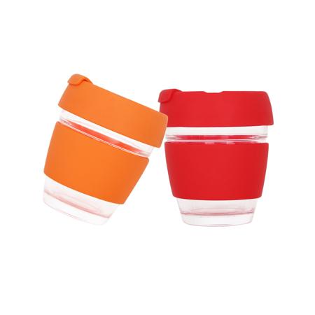 Flip Top glass coffee cups are the perfect reusable coffee cups. Both the silicone and the glass are made from food-grade material. The heat resistant silicone band ensures they are easy to hold with any hot beverages and you can mix and match the colours of the lid and the grips. A great way to promote your eco-friendly credentials, these compact reusable glass cups are perfect for your morning coffee cuppa. We have 8 different standard colours of bands and lids in stock, and also the PMS matching is available.
