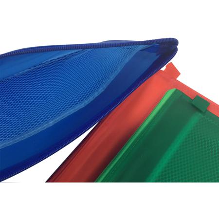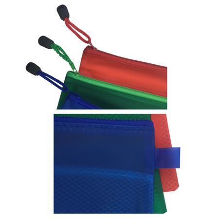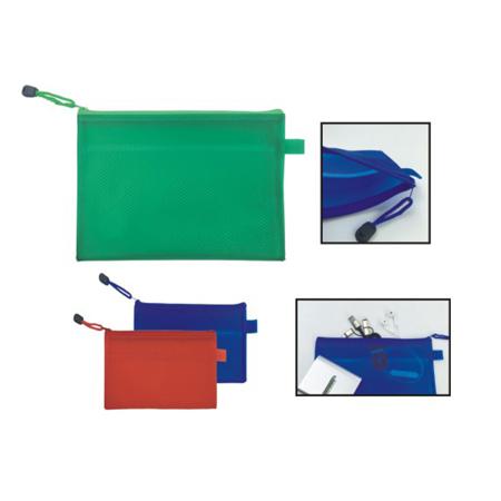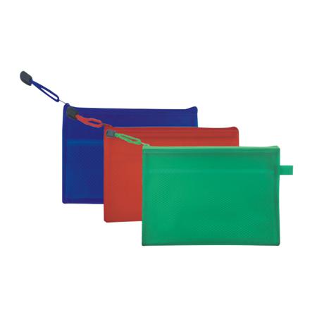 A5 sized Zippered Mesh Pouch, come in a 0.24mm frosted coloured PVC pouch, inner mesh is divided into 2 compartments. Personalized A5 Zippered Mesh Pouches can be customized with your company name and logo or a special messages using the print options.
