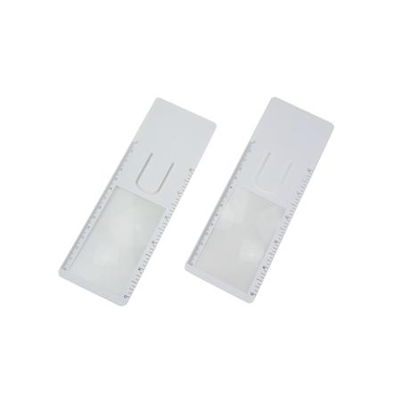 The Big Magnifier with Bookmark is a versatile item that combines a magnifyer, a ruler, and a bookmark, rolled into one! Made from PVC and available in white.