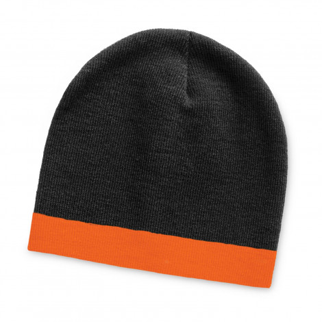 Warm close-fitting beanie knitted from acrylic yarn which has a distinctive stripe around the base. It is available in one size which will fit most people.