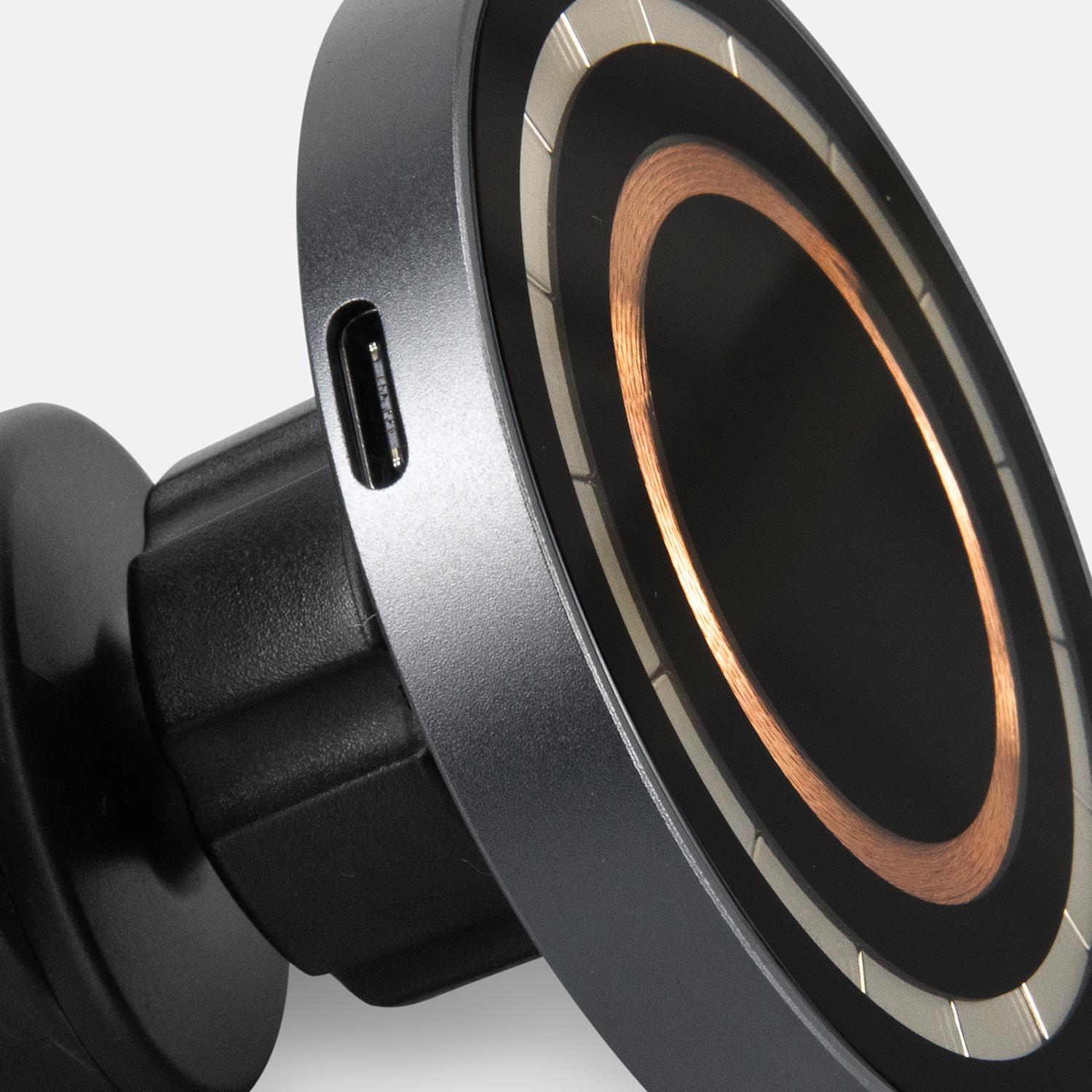 The Arc Wireless Car Charger blends innovation with elegance to deliver quality performance while on the road. Designed to seamlessly integrate into everyday life, this 15W charger clips firmly onto any car vent and features an adjustable brace for additional support. The charger comes with a metal ring for non MagSafe phones, ensuring compatibility with any device. Additional features include LED charging indicator lights, one handed placement, and the ability to use your device in either portrait or landscape positions. The sleek black glass finish, refined copper accents, and quality components make this a standout accessory. Presented in a beautifully crafted INGENIO gift box, it is ideal for corporate gifting, and the ultimate brand statement. INGENIO – Designed to lead, built to last, made to inspire.