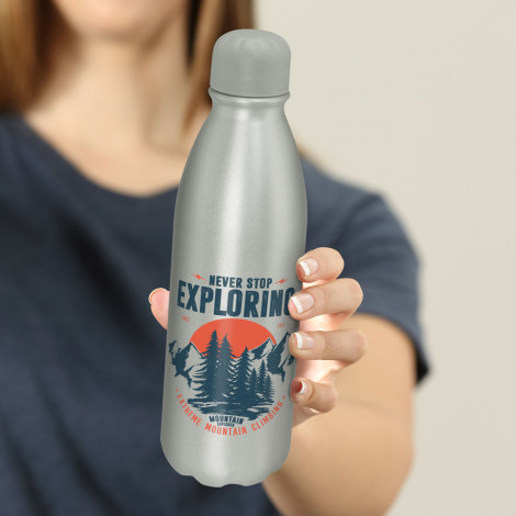 Classic 750ml aluminium drink bottle with a timeless design and a smart painted finish. It is BPA-free, has a secure screw on lid and it can be presented in an optional black gift box. This product is not dishwasher safe and handwashing is recommended.