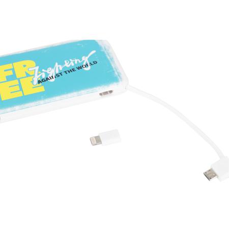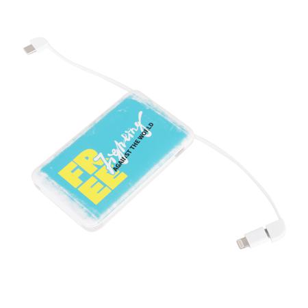 Portable multi connector power banks do a powerful job promoting your brand, This 5000mAh portable power bank features an A grade LI-Po battery and will charge most mobile phones twice and laptops up to 80 percent. It comes with integrated micro USB cable and type c cable on the both sides,and IOS connector housed in the case. You can brand your corporate image in full colour on the front for a standout look. This power bank has a lightweight design, yet large capacity, perfect for charging on the go. Plus dual cables allows you to charge two devices simultaneously without sacrificing charging speed, additional lightning allows you to use with any devices on the market, and no plugs needed. The LED indicator display lets you know how much energy is left in the device.