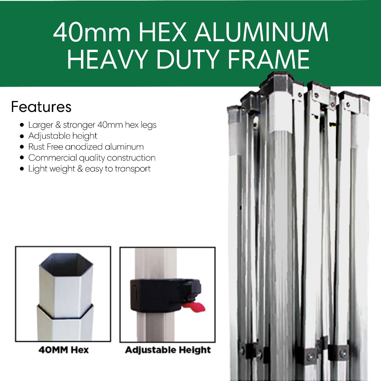 Robust Aluminium Frame: Built with a lightweight and robust hexagonal 40mm aluminium frame for durability and stability, ensuring reliable shelter in various conditions.