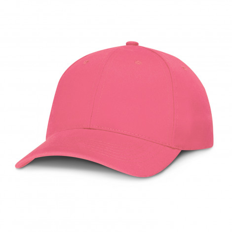 Structured six panel, heavy brushed cotton cap with embroidered eyelets, a pre-curved peak, a sweat band and an adjustable closure complete with a metal buckle which allows one size to fit most people.