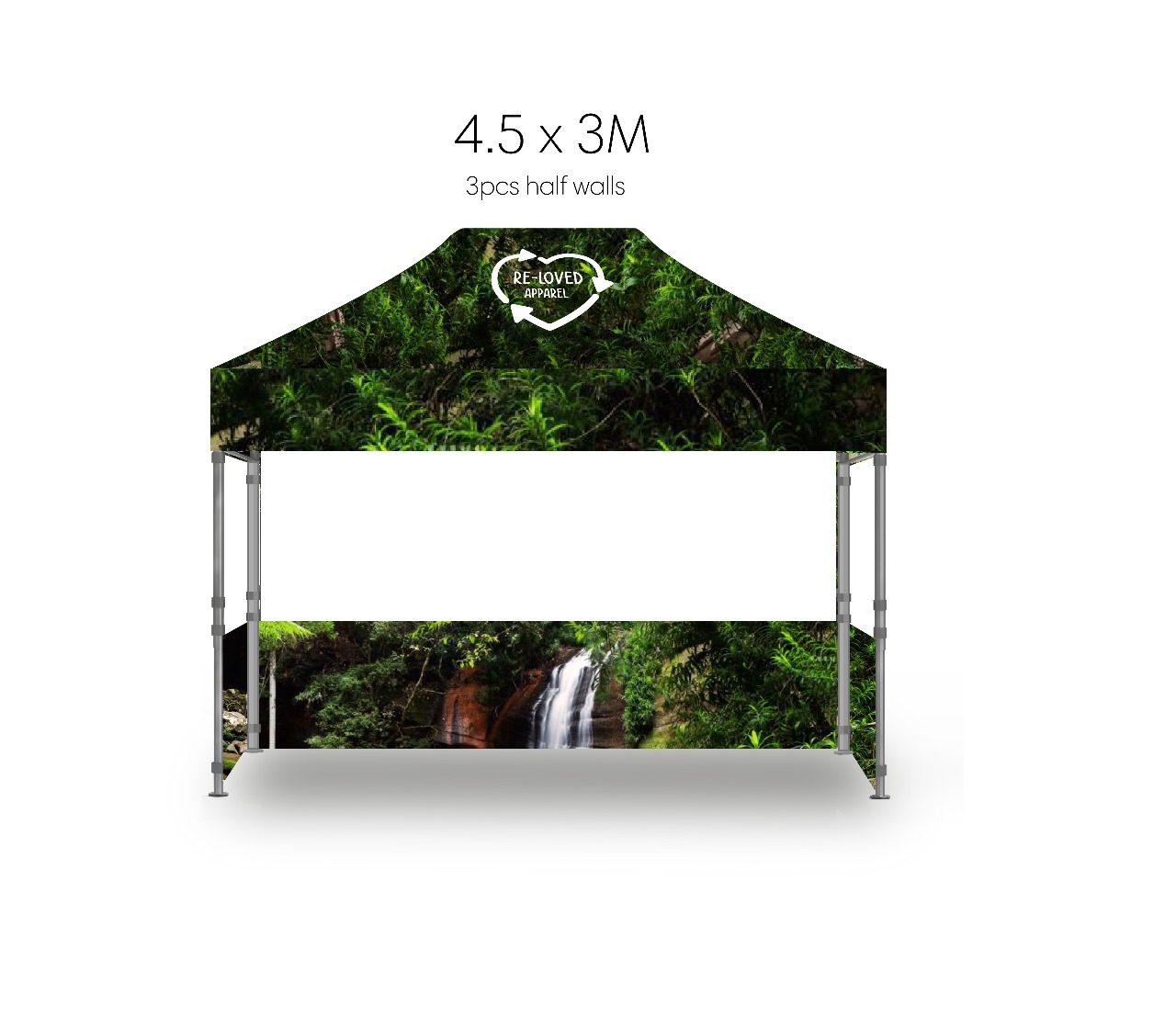 Our waterproof and flame retardant heavy duty 600D sustainable rPET canopy will maximise your brand exposure and keep you shaded and dry. We can also print back and side walls for an additional cost.