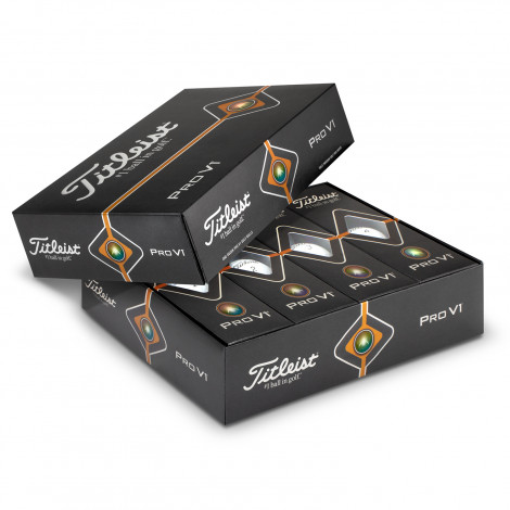 Titleist golf balls are the number 1 balls on tour and perfect for all skill levels. The PRO V1 is one of the best known and highly regarded golf balls on the planet. It is faster from core to cover and has been designed to leave the club-face with more ball speed and lower long game spin to achieve more distance while providing the best short game control to help golfers shoot lower scores. It has a very soft feel that produces enhanced Drop-and-Stop greenside control which stops iron shots much faster than harder balls. The PRO V1 is nicely presented in boxes of three in an outer box of one dozen balls. The branding on the packaging is subject to change without notice and this product must be ordered in dozens. Please note this product cannot be supplied unbranded or without the Titleist logo.