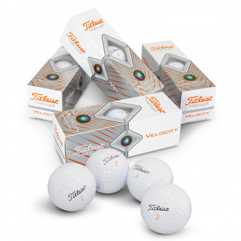 Titleist golf balls are world-renowned and the number 1 ball on tour. Velocity’s name says it all. Its large core and spherically-tiled 350 dimple exterior is aerodynamically engineered for explosive speed and distance off the tee with a higher flight trajectory. Even though it is primarily a distance ball the unique design delivers extra spin and greater stopping power for iron approach shots to the green. Velocity is nicely presented in boxes of three in an outer box of one dozen balls. The branding on the packaging is subject to change without notice and this product must be ordered in dozens. Please note this product cannot be supplied unbranded or without the Titleist logo.