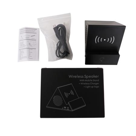This wireless charge speaker with phone stand combines the phone stand and a Bluetooth speaker into a flexible desktop item. You can listen to music and also keep an eye on social media at the same time. It has a built-in Bluetooth speaker for playing music for several hours and it also comes with a phone stand area for wirelessly charging compatible devices. This item would be a great give-aways at tech shows, and you can choose to print with any logos if you want.
